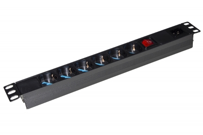 PRESA MULTIPLA PER ARMADI RACK 19 CON INTERRUTTORE LUMINOSO.Questa multipresa non ha il cavo incluso, ha un connettore maschio C20, che permette il collegamento di un cavo della lunghezza desiderata. Il cavo con connettore C20 ha la particolarità di reggere correnti molto superiori ai normali cavi di alimentazione, quindi questa multipresa, oltre che permettere di usare un cavo della lunghezza desiderata, è anche indicata per il collegamento di dispositivi con assorbimenti molto alti.Per alimentare i dispositivi all'interno degli armadi rack, si attacca ai montanti laterali 19 pollici con le staffe incluse (reversibili). Sono incluse anche le viti per l'installazione sui montanti 19.Con 6 prese universali Schuko tedesche e italiane tripolari UNEL 2P+T 16A femmina disposte a 35 gradi e un presa C20 per il collegamento di un cavo.La disposizione delle prese a 35° permette il collegamento dei cavi spina tedesca a 90°Occupa 1 Unità.250Volt 3500Watt.Caratteristiche cavo H05VV-F, sezione 1,5 mm.
